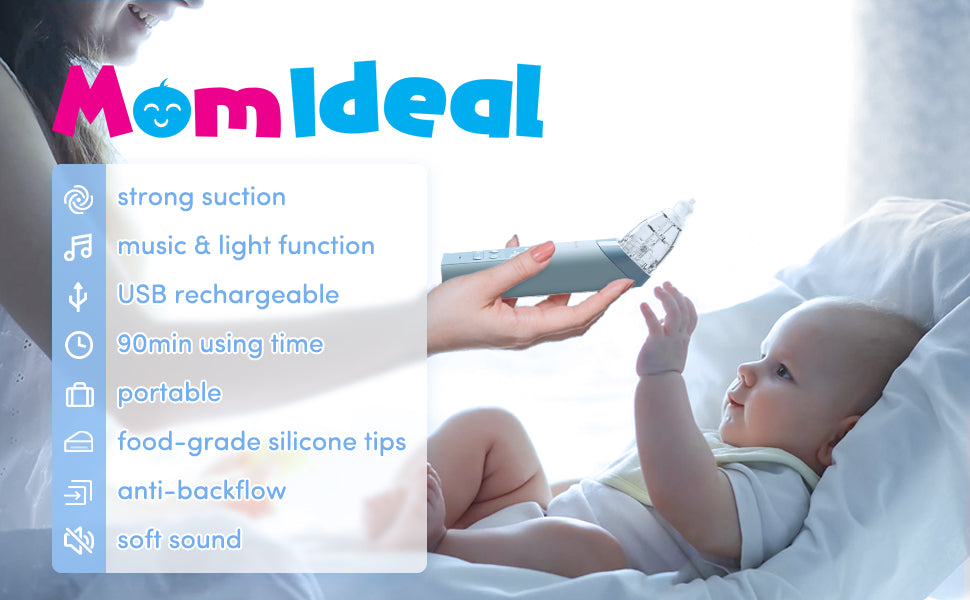Electric Baby Nasal Aspirator, Upgrade Nose Sucker for Baby, Rechargeable Booger Sucker for Toddler with Music & Light Soothing, Food-Grade Silicone Nozzles, Adjustable Suctions
